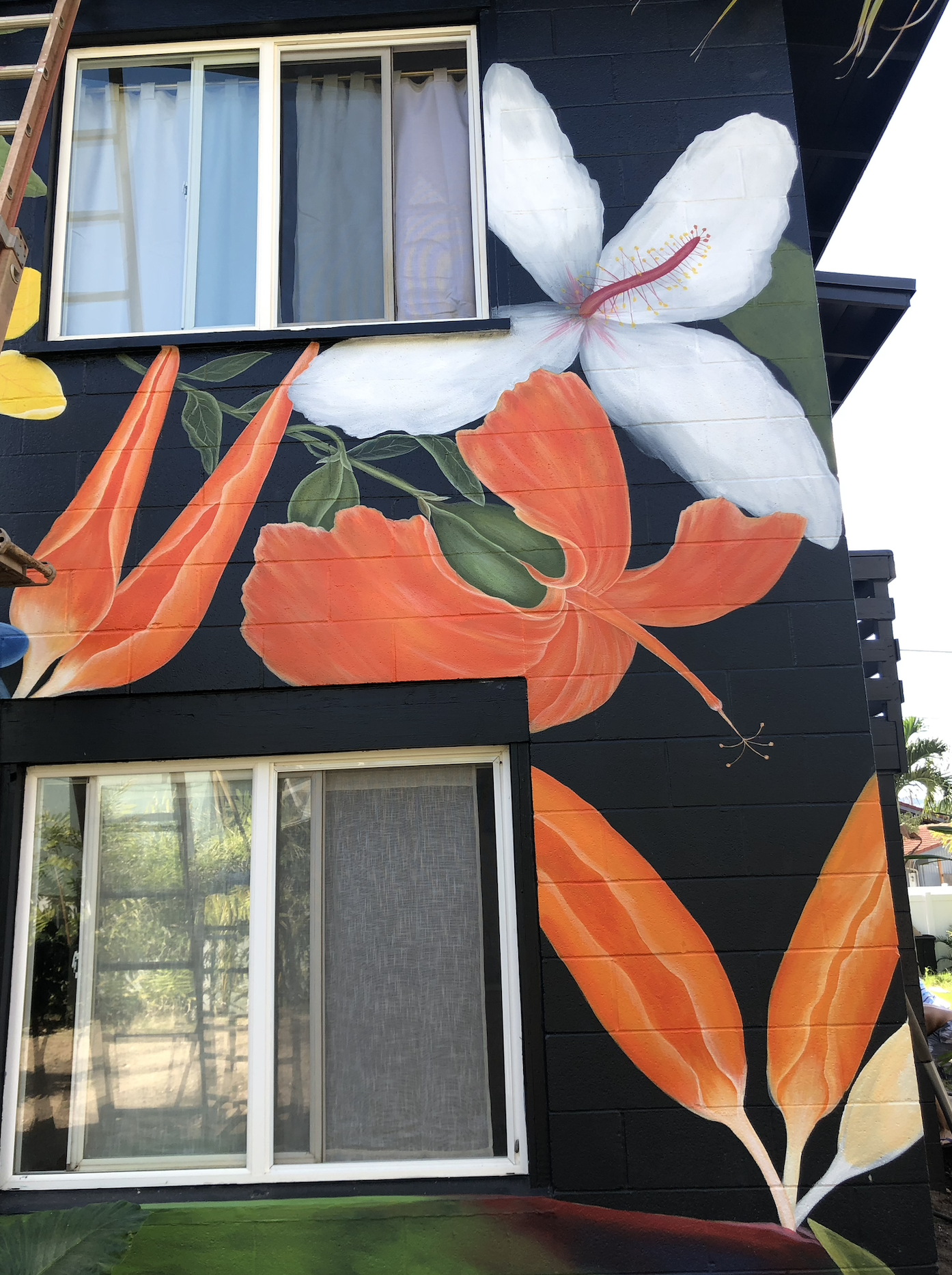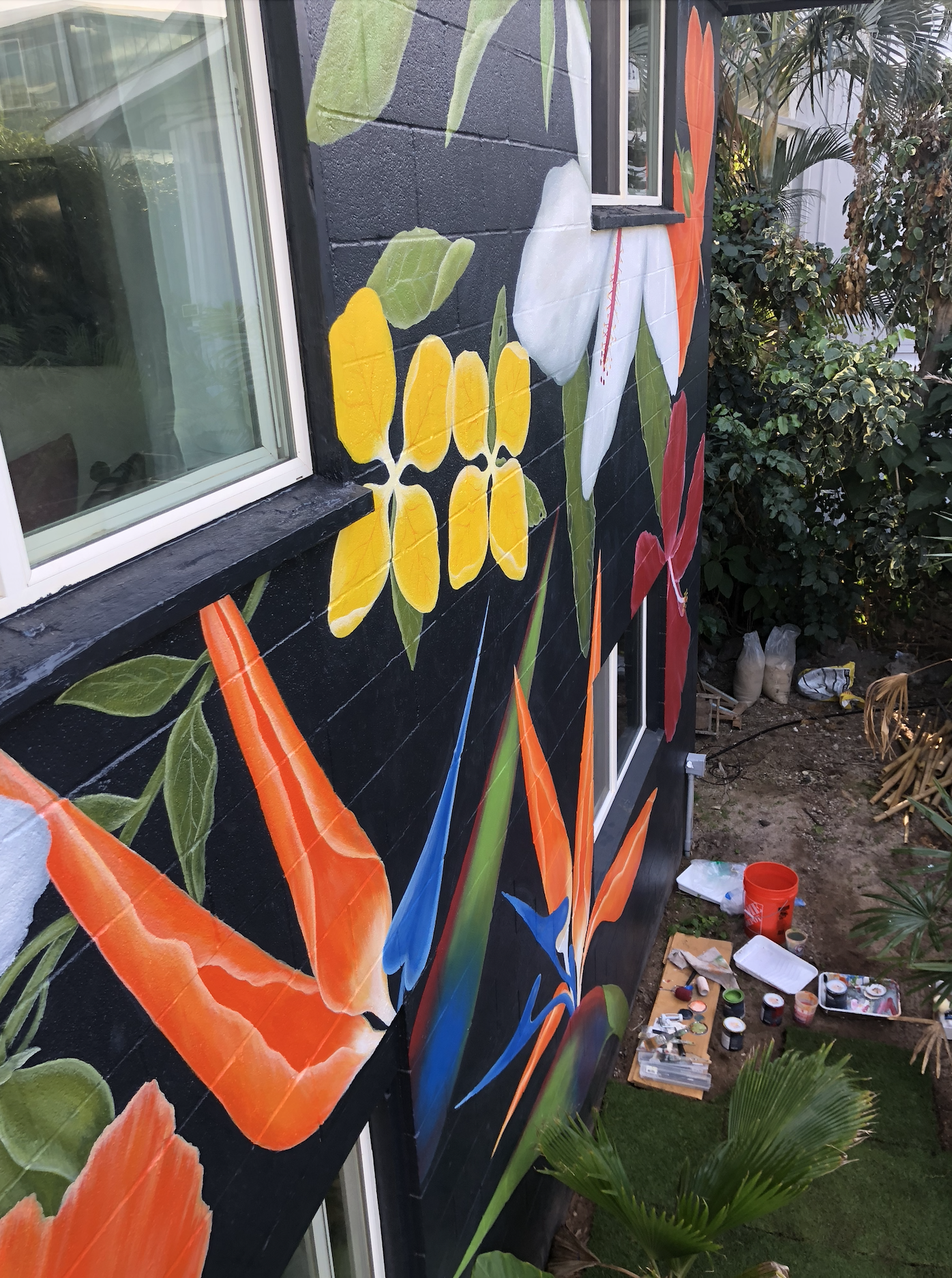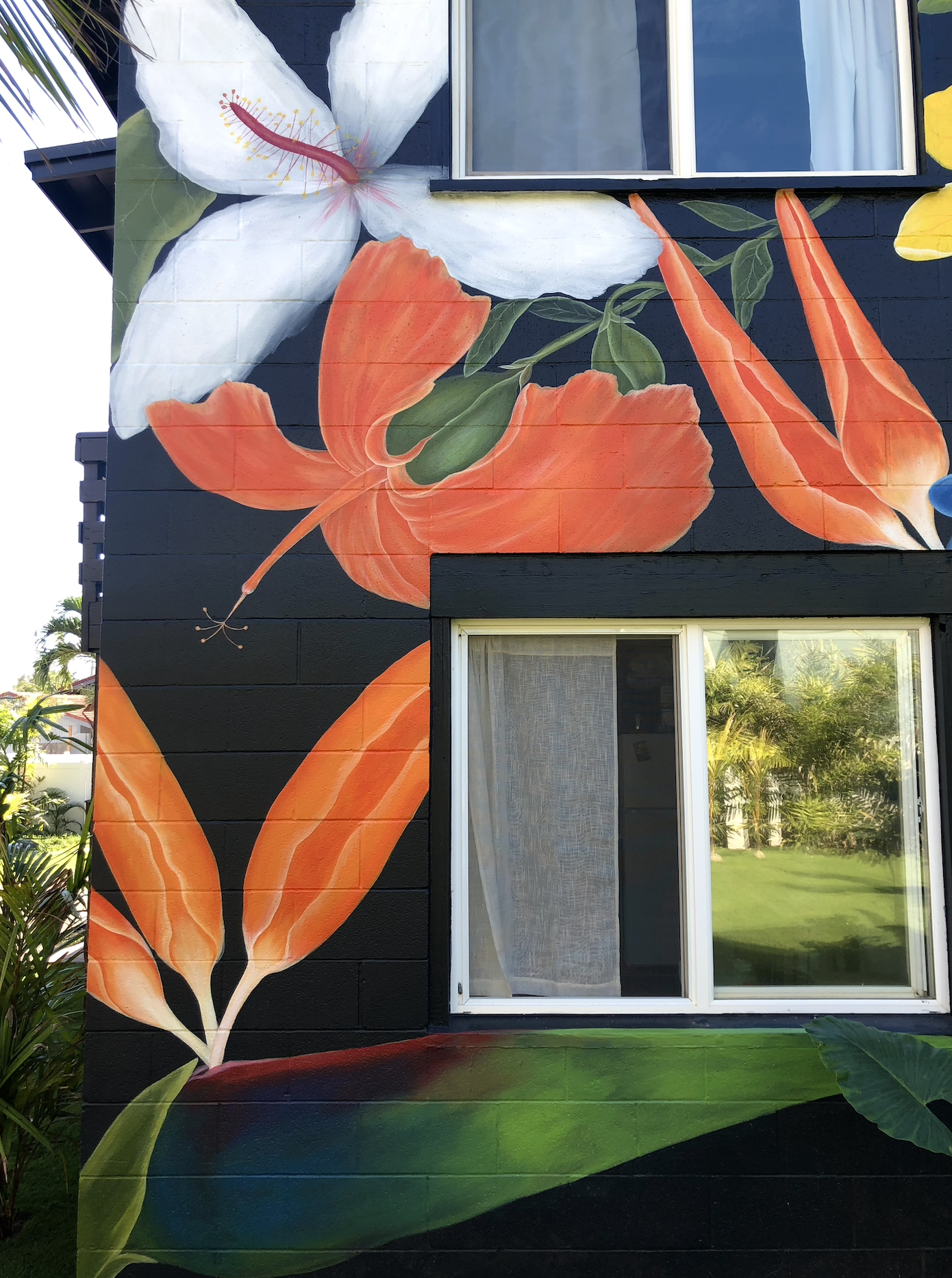 This Hawaii mural was commissioned for my clients Air BnB right on the water front. The mural reflects the lush flora of the area and the Hawaiian spirit.