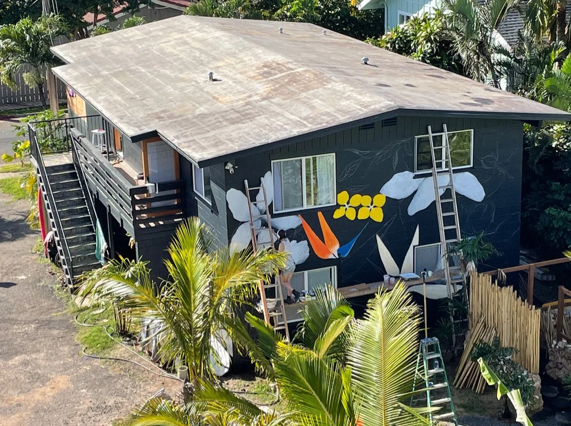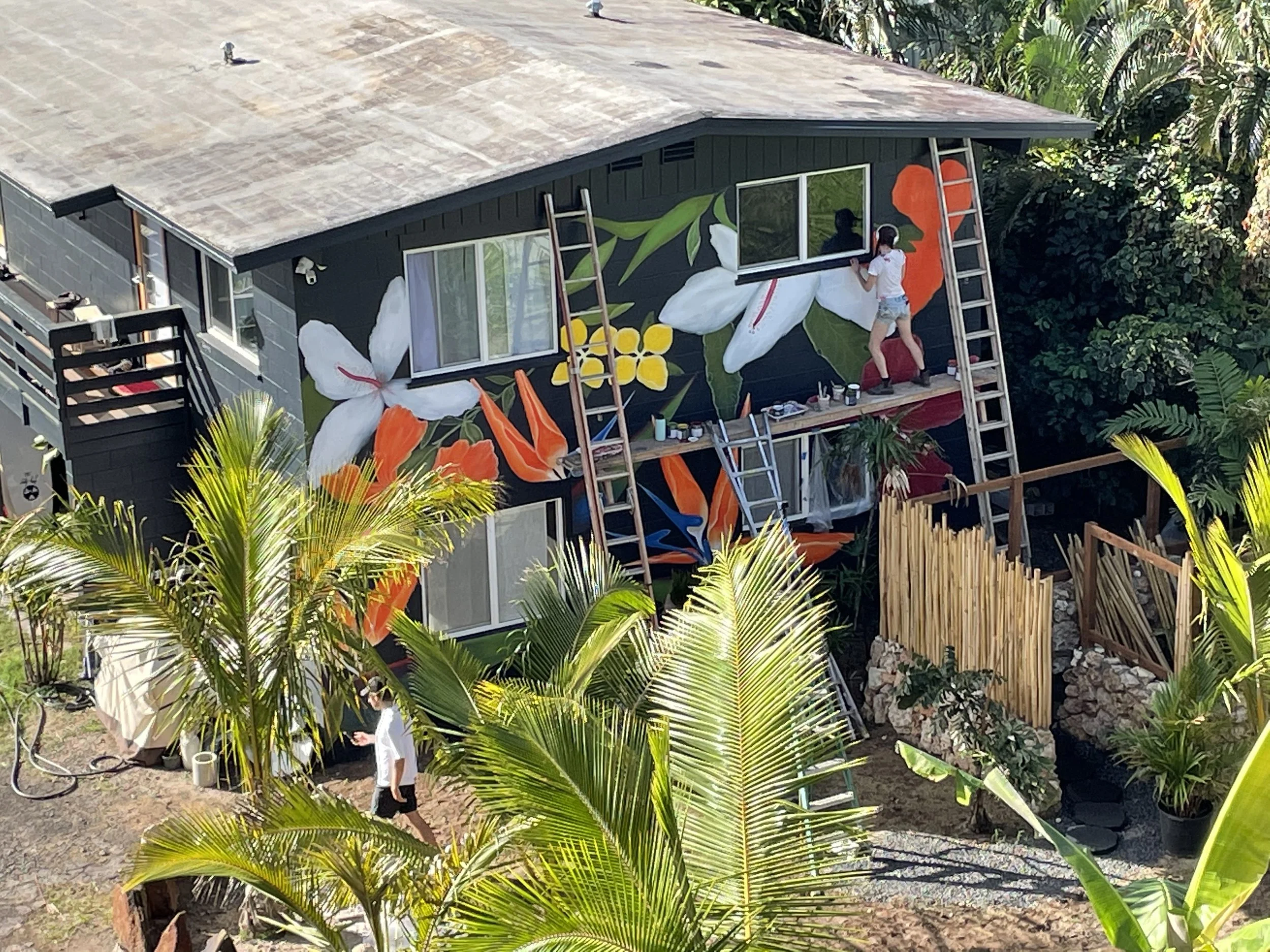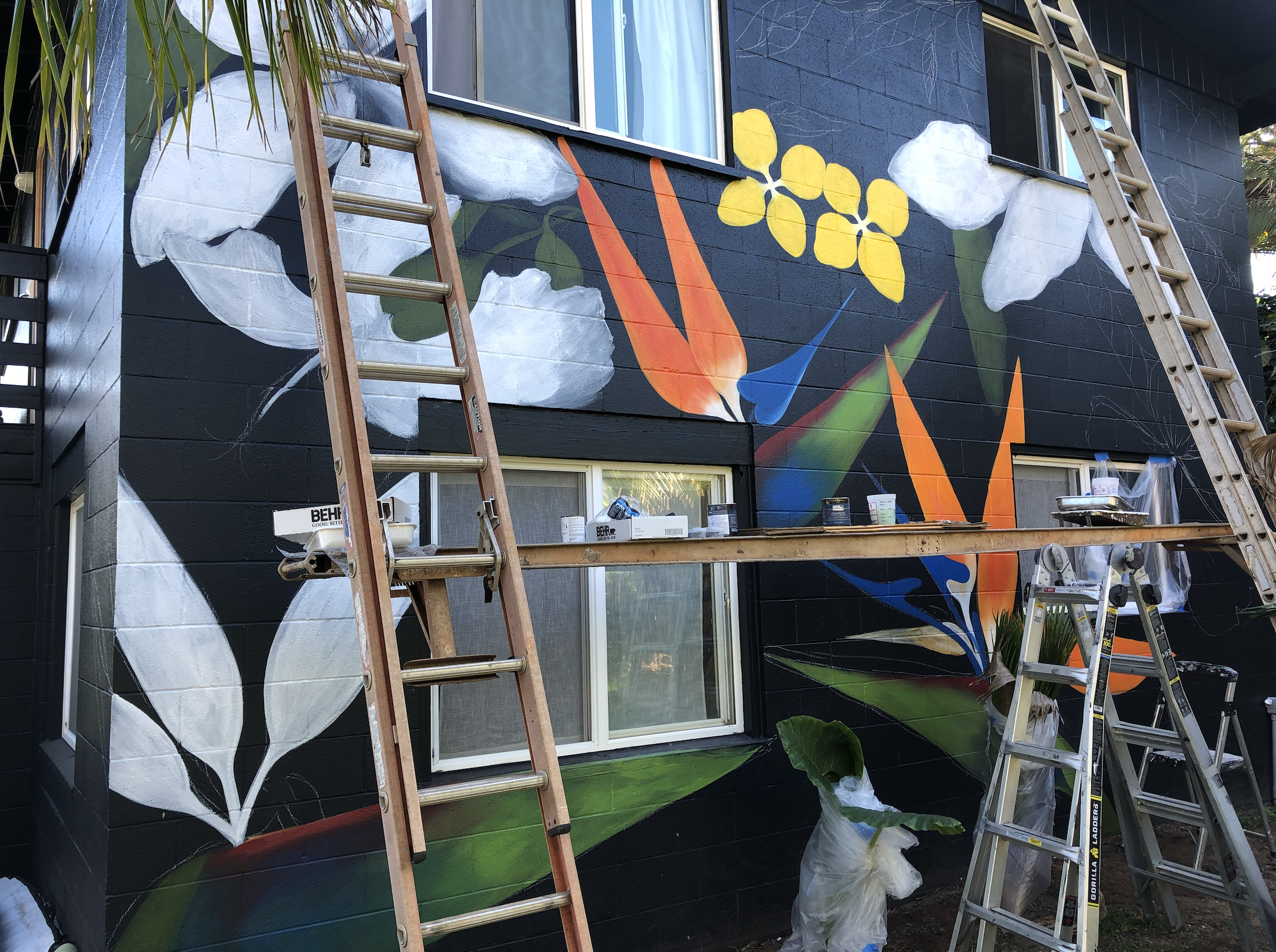 This Hawaii mural was commissioned for my clients Air BnB right on the water front. The mural reflects the lush flora of the area and the Hawaiian spirit.